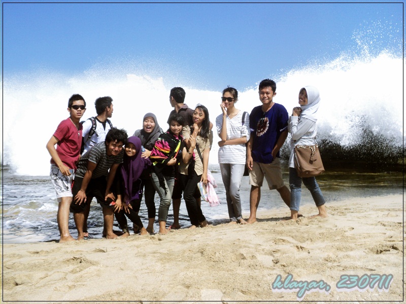 Hari itu jadi hari yang... AMAZING! mwahahahhaha... iya beneran amazing loh. Jadi, begini ceritanya, malam sebelumnya, aku dikasih tau salah satu teman, namanya vicky. Katanya, hari sabtu dia dan temen-temen yang lain mau mengadakan perjalanan ke Pantai Klayar, you know where it is? oke, buat yang belum tau, nih biar aku kasih tau. Pantai Klayar itu salah satu pantai yang ada di Pacitan, kota kelahiranku, kota tempatku tinggal. FYI, Klayar terletak sekitar 35 km ke arah barat dari kota pacitan, lumayan jauh kan sodara-sodara?